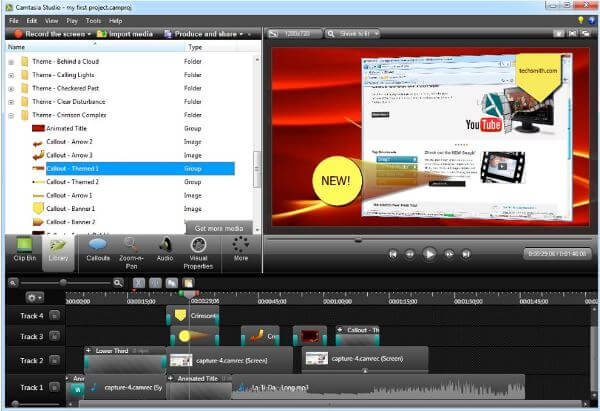 Camtasia Studio – пакет приложений для записи активности на экране вашего компьютера. Будет полезен при создании презентации продукта, обучении персонала, поддержки клиентов.